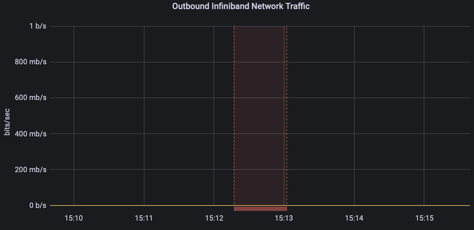 Above shows InfiniBand traffic between two compute nodes. Yellow indicates compute node 0, green indicates compute node 1.